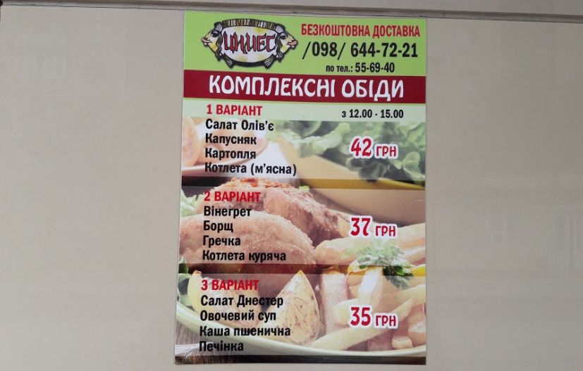 Доступні ціни. Знижки на комплексні обіди. Доставка