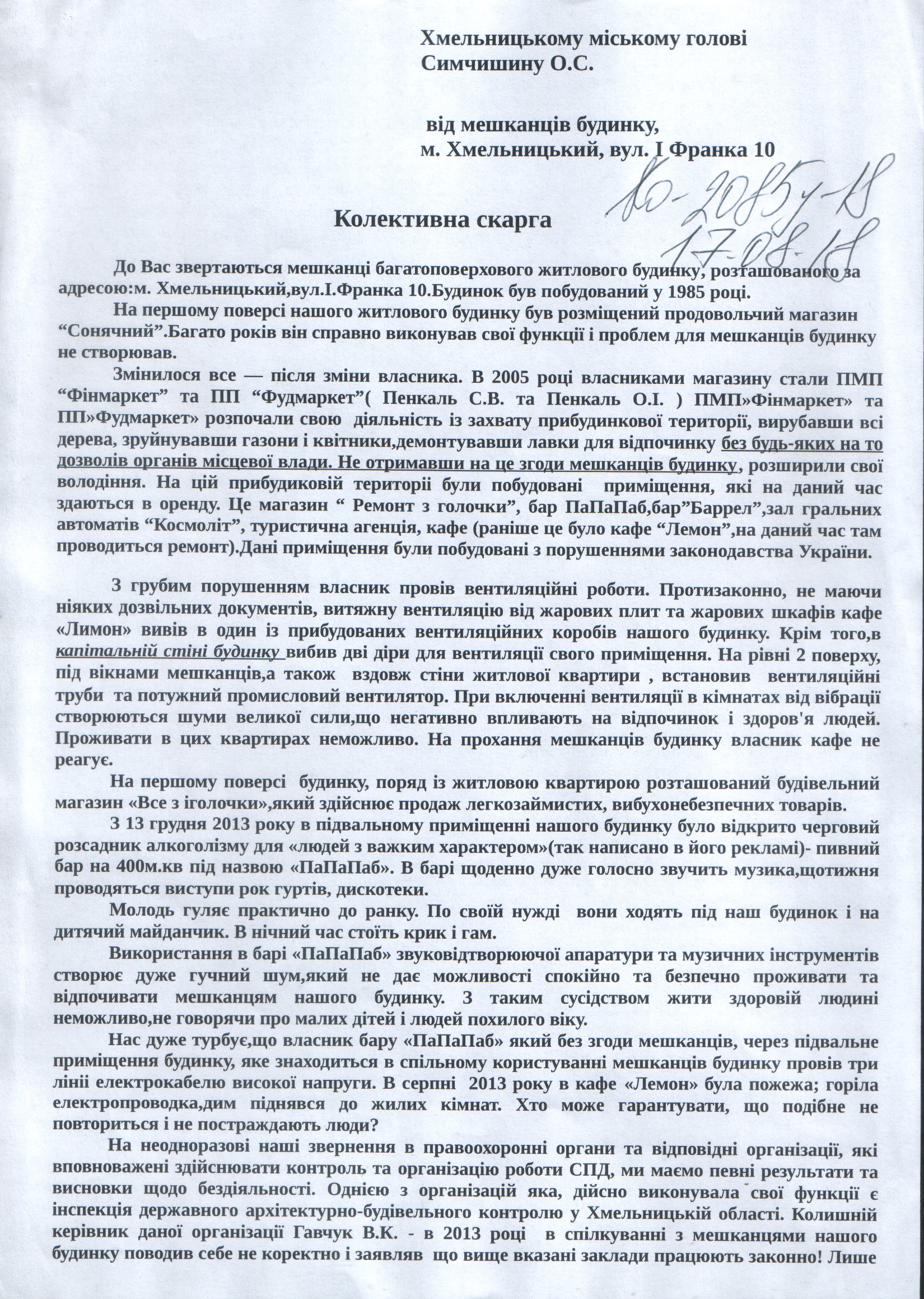 Хмельницькою міською Радою заборонена робота даного закладу після 22.00 - винесено рішення!!! Власники закладу не реагують а просто ігнорують місцеву владу, поліцію і мешканців будинку №10 по вул.Франка!!! Заклад працює до 2.00 ночі, в пятницю і суботу до 3.00(Дискотека,пянки і обісцяні стіни в дворі будинку) По Скарзі мешканців, має бути перевірка даного"закладу" і принято рішення щодо ЗАКРИТТЯ!!!"