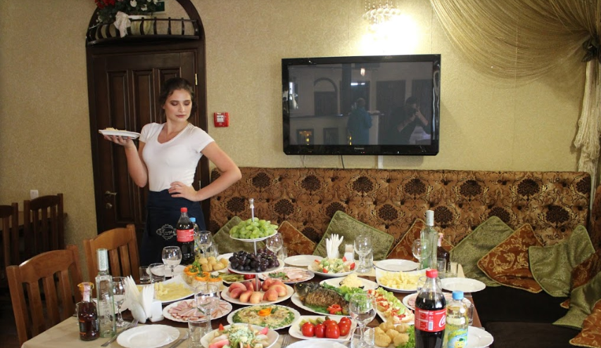 Банкетный зал рассчитан на 40 персон, малый зал - на 10 персон. Основной зал оборудован музыкальной аппаратурой и светомузыкой.