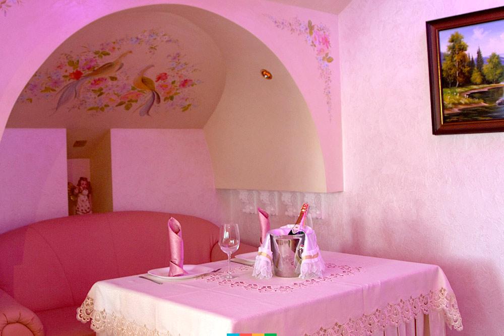 Заведение находится недалеко от центра города и имеет изысканный, роскошный интерьер. К услугам гостей банкетный зал на 130 персон, летняя площадка, отдельные комнаты-кабинки, есть парковка и живая музыка. Изюминка ресторана - комната для признаний и комната для помолвки.