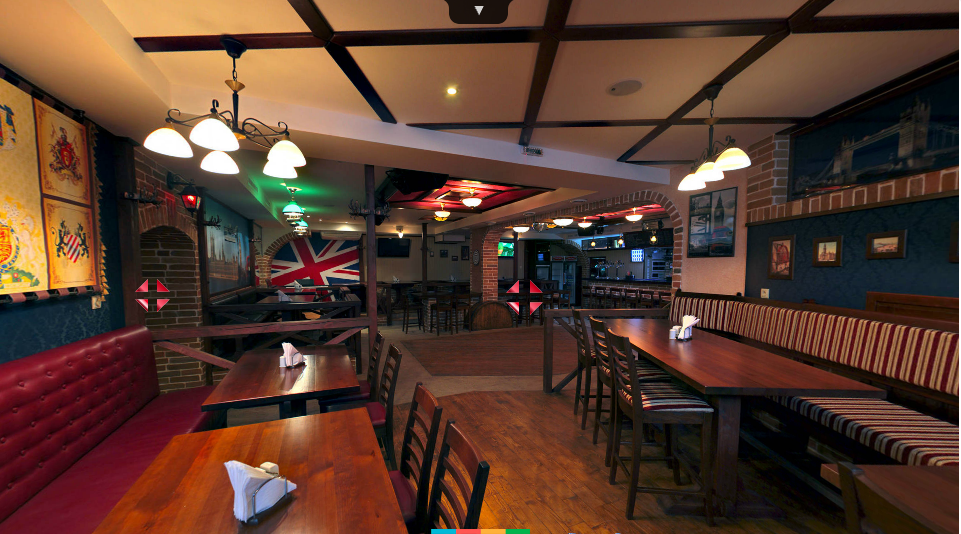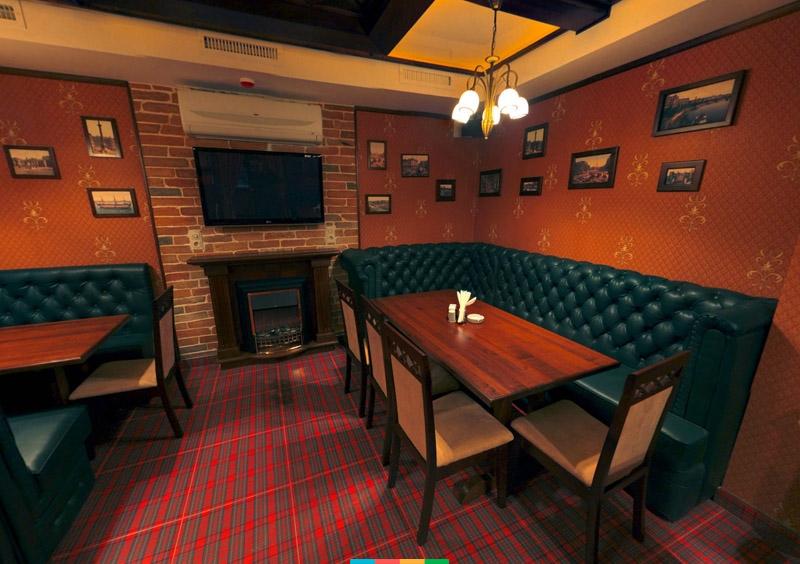 Интерьер заведения - полуподвальное помещение с большим залом. В текстуре - традиционные британские мотивы и уют. На стенах - картины с изображением старинной Англии и Лондона. Разместиться можно за простыми деревянными столами с деревянными диванами. Простое непафосное место для отдыха. В теплое время года работает летняя площадка.