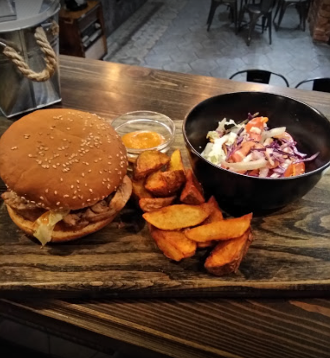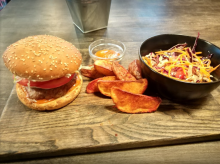 Таки смачний бурер (причому свинна котлета не з фаршу а цільний кусок м'яса), але дивний коулслоу заправлений, таке враження, соняшниковою олією змішаною з оливковою і дивний соус барбекю який зовсім не як соус барбекю.