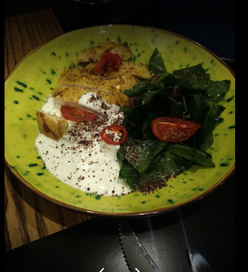 Смачні салати. Шаурма не краща з тих що їв. Смачна макрель. Не все з меню було в наявності. Гарний дизайн та атмосфера. Привітні офіціанти.