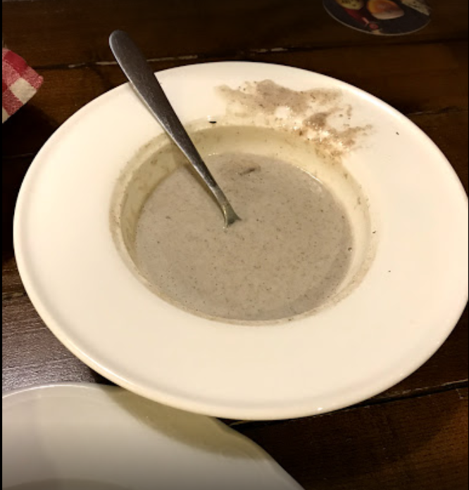 Замовлення: грибний крем-суп.... очікуєш крем-суп, а не звичайний суп рідкий грибний з бульбашками, мабуть перед цим блендерувалиа і + шматок сирого гриба по центру