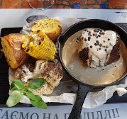 Єдине, що не дуже сподобалося особисто мені із замовлених страв - стейк із цвітної капусти. Я її дуже люблю, і сама страва виглядала смачно, але капуста була твердою.