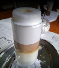 Мы заказали кофе, сок, чай штрудель з вишнями.