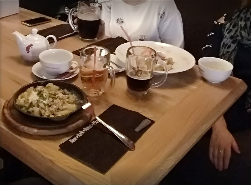 В ресторане мы с мужем заказали блинчик с курятиной, грибами и сыром (38 грн), жульен с курятиной в булочке (45 грн) и два чая (44 грн за два) с лимоном (10 грн за два). Заказ принесли быстро. Мне очень понравился жульен в булочке. Я бы советовала его попробовать будущим посетителям. А вот с чаем мы немного просчитались. Думали порция - чашка, а оказалось порция - это целый заварник В каждом заведении по разному и мы об этом не знали. Было бы не плохо, если бы официант уточнил эту деталь перед подачей.