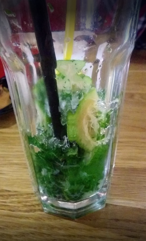Дуже не смачний грибний суп-пюре . Коктейль Мохіто йде з подрібненою м'ятою, замість випивати ти його жуєш